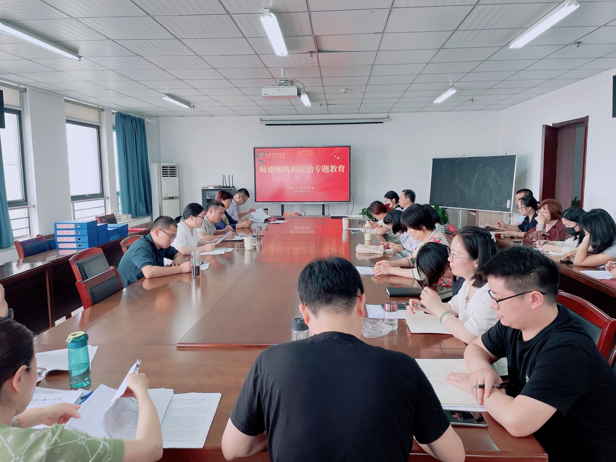 董萍强调,各系部、支部要结合党纪学习教育,组织全体教职工进一步全面、系统、深入学习、研讨习近平总书记关于师德师风建设的重要论述,弘扬教育家精神,进一步在学懂弄通上下功夫,内化于心,外化于行,学做融合,养成行动自觉;全体教职工要进一步提高政治站位,加强政治理论学习,提升师德修养和自身素质,增强对教师职业的认同感、责任感和使命感,严格规范一言一行,以教书育人为己任,以高尚的情操引导学生全面发展;要以案为鉴,以案为戒,践行师德规范,恪守师德底线,常怀敬畏之心,敬畏岗位、敬畏职责,以赤诚之心、奉献之心、仁爱之心投身教育事业。