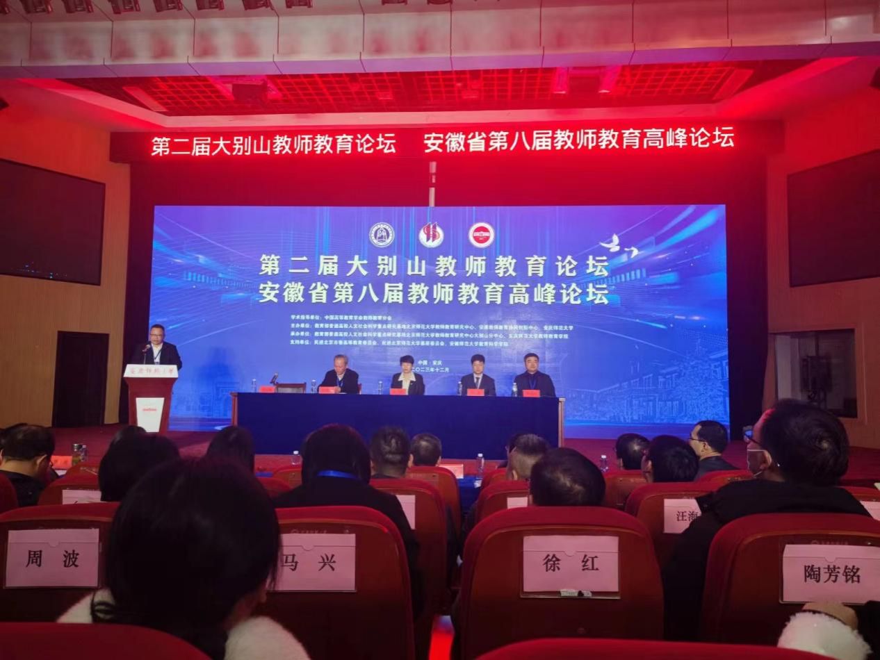 2023年12月8-9日,第二届“大别山教师教育论坛”暨安徽省第八届教师教育高峰论坛在安庆师范大学召开。大会以深入学习贯彻党的二十大精神和习近平总书记关于教育的重要论述,推进大别山革命老区教师教育现代化,推动安徽省高质量教师教育体系建设,加强教师教育机构之间学术交流为宗旨,大会开展安徽省高校教育学院院长工作会议、系列主旨报告、专家分论坛报告等多项活动。来自北京师范大学、信阳师范大学、黄冈师范学院、《光明日报》社、《教育家》杂志社以及安徽省内教师教育类高校等三百多位专家学者参加此次论坛。