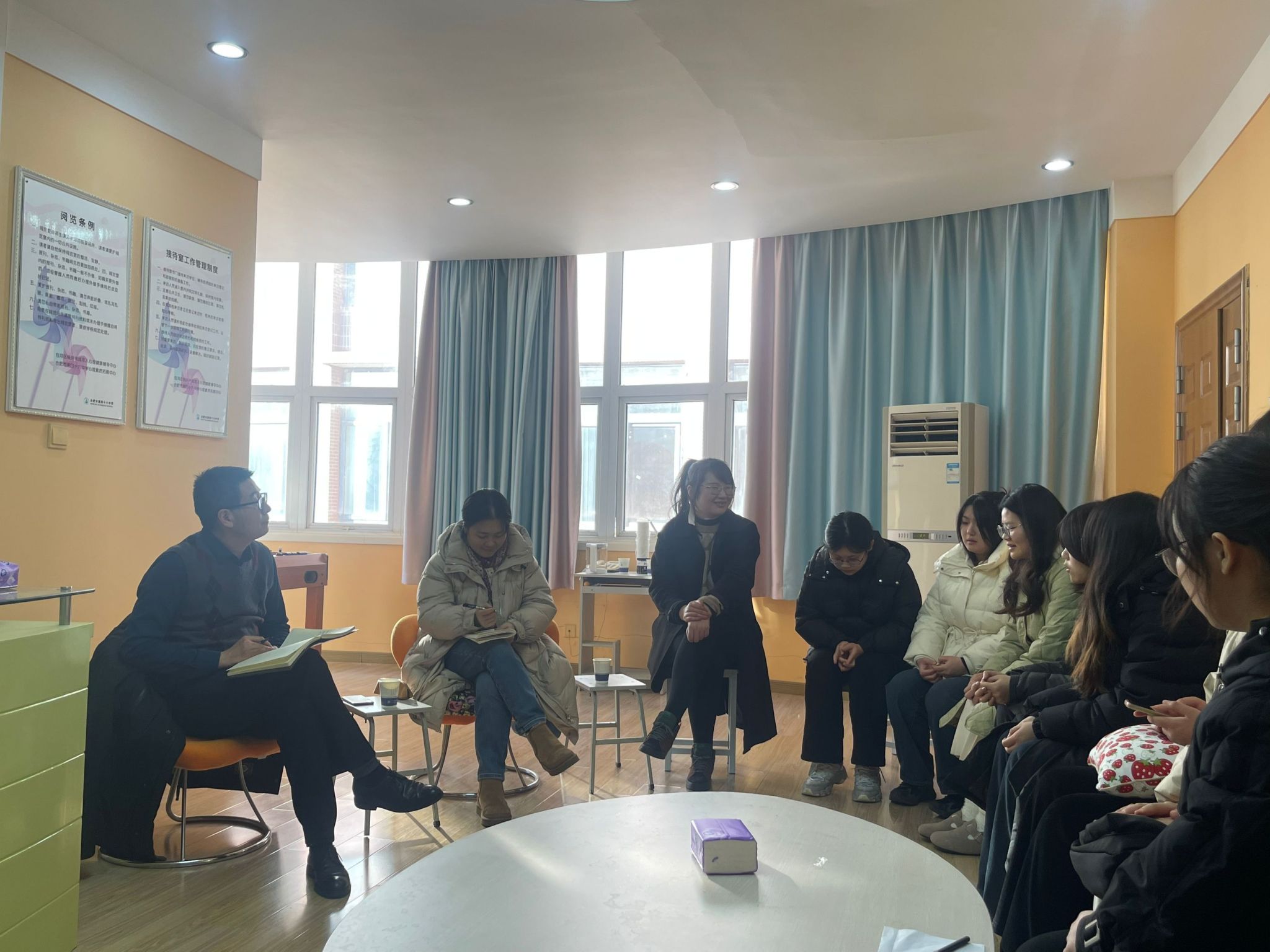 之后同学们畅所欲言,对实习期间的感受与学习体会进行了交流。有些同学提到前期对于实习流程及实习任务不够清晰,也有同学谈及四十六中校园内的无障碍设施让他们倍感校园的人文关怀与温暖,同时期待学校能够开放各学科的名师讲堂,从课堂中了解不同老师的上课风格并学习借鉴;还有同学认为纸上得来终觉浅,深入四十六中实习让自己真正了解了一名心理老师的工作内容,希望能够多多获得上课机会,在实践中锻炼。