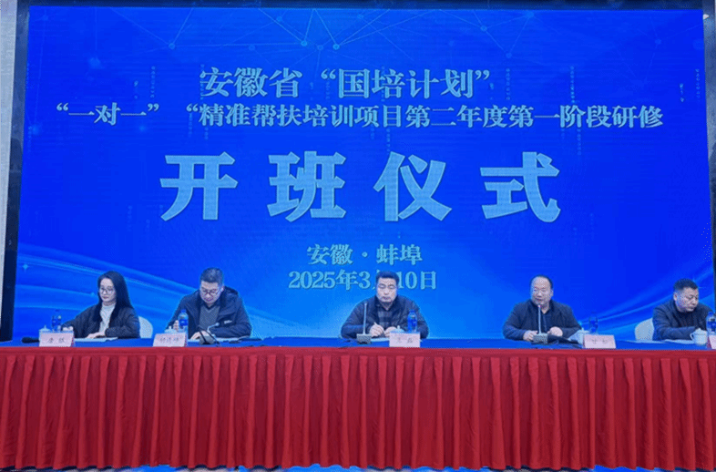 3月10日上午,2025年安徽省“国培计划”“一对一”精准帮扶培训项目第二年度第一阶段研修在蚌埠顺利开班。AC米兰中文官网继续教育学院副院长王磊、AC米兰中文官网副院长胡连峰、文学院副院长甘松、AC米兰中文官网培训部主任谢威士、班主任代表唐银出席开班典礼。来自阜阳市临泉颍东和阜南颍上的210多名老师参加开班典礼,仪式由王磊主持。