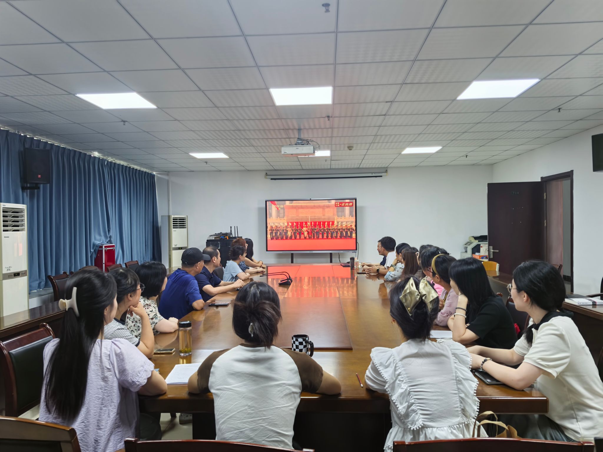 上午9时,阅兵仪式正式开始,伴随着雄壮的国歌与嘹亮的军号,护旗方队迈着铿锵有力的步伐护卫国旗前行,每一步都踏响历史的回响。师生们目光紧紧聚焦屏幕,认真聆听习近平总书记重要讲话,深切感悟国家铭记历史、缅怀先烈、珍爱和平、开创未来的决心和意志。一支支受阅方队步伐整齐、英姿飒爽,一件件现代化国防装备震撼亮相,展现出了中国军队的强大实力和高昂士气,全体师生的自豪感与使命感在心中激荡。