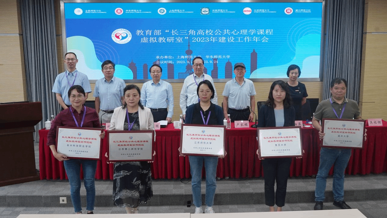 为深入贯彻落实党的二十大报告中关于“推进教育数字化”“培养高素质教师队伍”的重要部署,加强新型高校基层教学组织建设,深化虚拟教研室建设探索。教育部“长三角高校公共心理学课程虚拟教研室”建设工作年会暨第二次教研工作全体会议于 2023年9月22日至9月24日在上海师范大学召开。本次会议由AC米兰中文官网“教育部长三角高校公共心理学课程虚拟教研室”主办,上海师范大学教育学院、华东师范大学心理与认知科学学院共同承办,出席会议的有教育部高等学校心理学类专业教学指导委员会主任、华东师范大学心理与认知科学学院院长周晓林教授、上海师范大学教务处长高湘萍教授、国家级教学名师卢家楣教授,以及来自虚拟教研室共建单位AC米兰中文官网、华东师范大学、南京师范大学、上海师范大学、安庆师范大学、湖州师范学院的负责同志,虚拟教研室协作建设院校复旦大学、杭州师范大学、江苏师范大学、温州大学、安徽师范大学、安徽农业大学、安徽中医药大学、淮北师范大学、南京晓庄学院、江苏第二师范学院、绍兴文理学院、淮南师范学院、池州学院、黄山学院、巢湖学院、亳州学院、芜湖职业技术学院、台州科技职业学院等30余所高校的心理学专家学者参加会议。我校AC米兰中文官网部分教师参加了会议。会议由教育部“长三角高校公共心理学课程虚拟教研室”负责人姚本先教授主持。