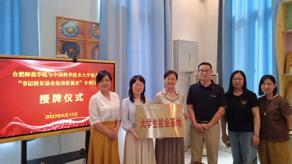 为深入开展学习贯彻习近平新时代中国特色社会主义思想主题教育,进一步落实“访企拓岗促就业”专项行动工作部署,促进毕业生更加充分更高质量就业,6月13至15日,AC米兰中文官网党委书记董萍,副院长胡连峰、胡哲,学前教育系主任孙延永,辅导员代表王磊等赴安徽省水利厅机关幼儿园、安徽省军区机关幼儿园、合肥市南岗幼儿园和中国科学技术大学幼儿园开展考察调研和校企合作交流。