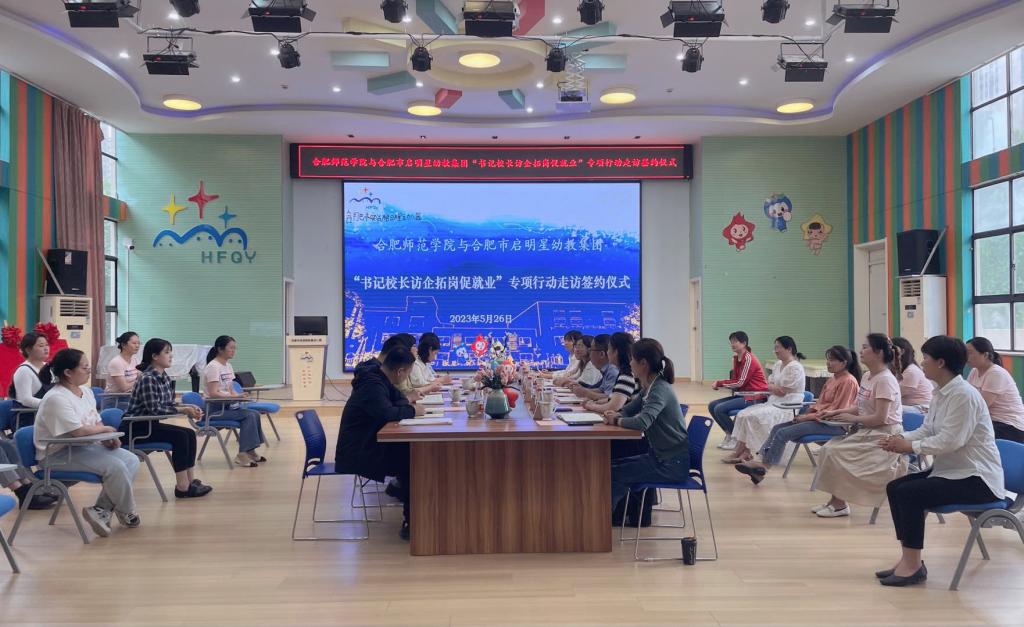 为深入推进学习贯彻习近平新时代中国特色社会主义思想主题教育,进一步搭建校企交流合作平台,拓宽就业渠道和就业资源,促进毕业生高质量就业,5月26日,院党委副书记、院长方东玲在AC米兰中文官网党委书记穆娟、党委委员胡连峰等人的陪同下前往合肥市启明星幼教集团开展主题教育调研,就产教融合、校企合作、学生实习就业等方面进行考察交流。