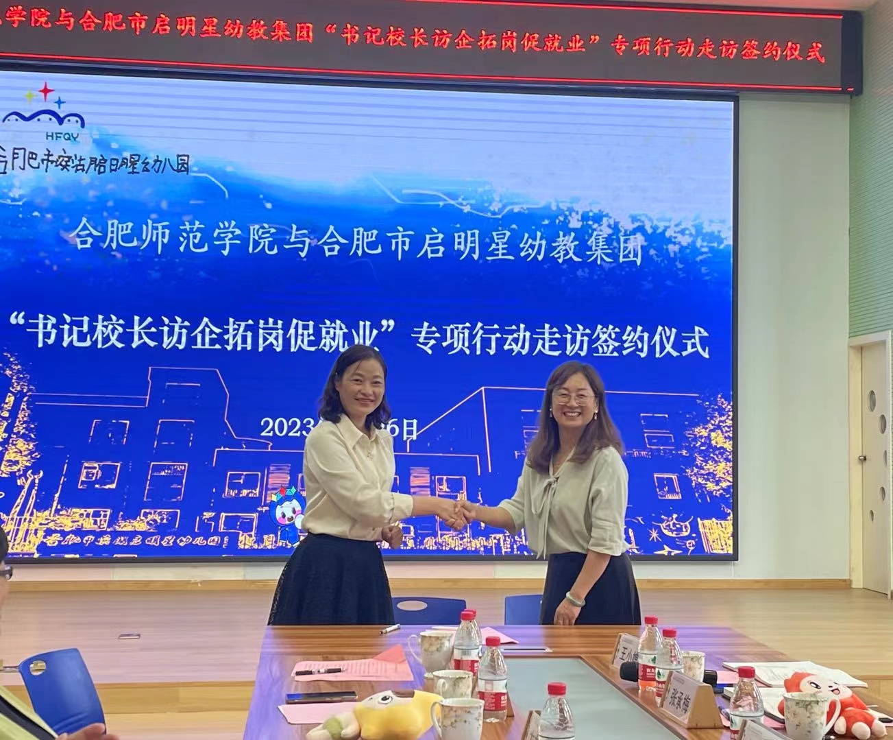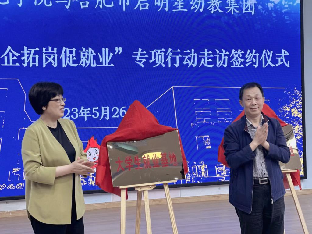 在签约授牌仪式上,方东玲、吴家良分别为启明星幼儿园、金斗路幼儿园、嵩山路幼儿园大学生就业基地揭牌。穆娟代表学院分别与三家幼儿园签署了共建毕业生就业实习基地合作协议。