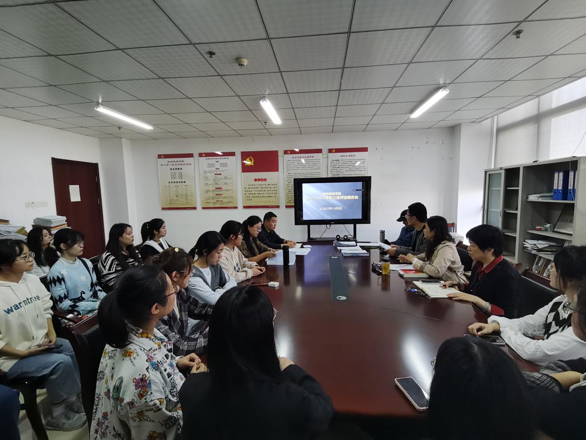为进一步加强学院优良学风建设,营造积极、健康、向上的学习氛围,调动学生学习主动性和积极性,全面提高学院育人成效。教师教育学院于11月9日下午在锦绣校区行知楼706会议室和滨湖校区会议室举办2021-2022学年三优评选报告会。本次评选会采取跨校区、线上和线下相结合的方式进行。学院党委书记穆娟、院长李群、副院长闫龙、辅导员担任评委。