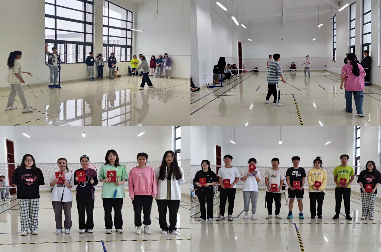 此次比赛同学们踊跃报名,认真备战,在赛场上尽情挥洒汗水。初赛结束后,进入决赛的有女单八人,男单四人,混双晋级四支队伍。羽毛球比赛不仅仅有技术的对抗、战术的灵活转变,更有心理的博弈和顽强拼搏的意志力。赛场上,同学凭借着自己对落点的判断,在球接近底线时淡然让步,随着羽毛球出界,得到了宝贵的一分;有的同学先打高远球,将对手逼至后场,然后趁着对手尚还未来得及赶回中场之时,轻轻吊球,让球轻松落在网前;还有同学用自己精妙的假动作,故作轻拍却将球大力抽至后场,对手一时被欺骗,只好眼睁睁看着球落地。观众为他们欢呼鼓劲,同时也被他们顽强拼搏的精神感动。在紧张激烈的比拼之后,最终男单冠军为郭丹青,女单冠军为黄雪阳,另有三支队伍分获混双冠亚季军。