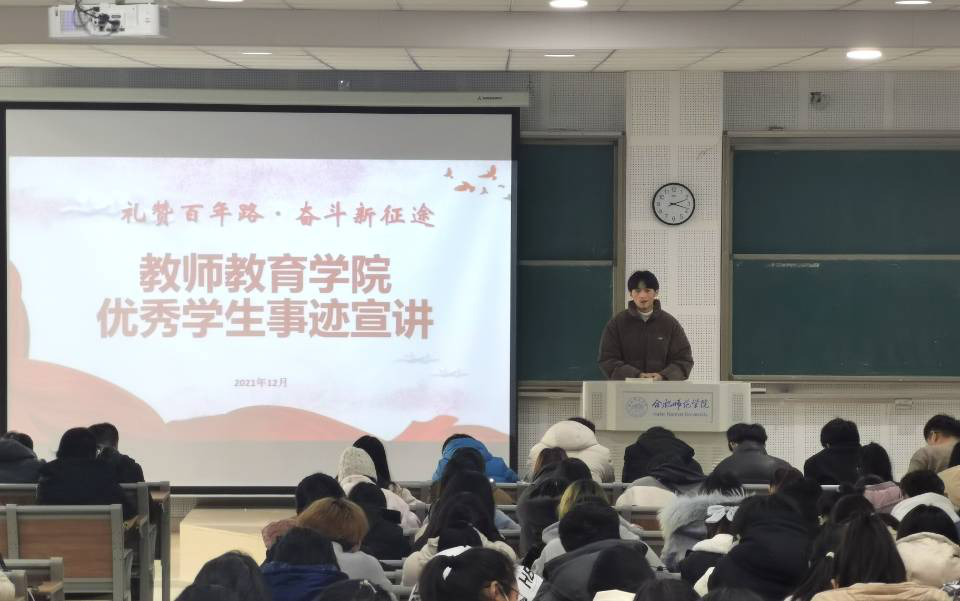 弘扬主旋律,传递正能量,礼赞百年奋斗路,发挥优秀学生的朋辈影响力,此次宣讲活动旨在激励学院学生争做有理想、有追求、有担当、有作为、有品质、有修养的栋梁之才的同时,厚植爱党爱国爱社会主义的情怀,助力同学们成为具有合师独特气质的、堪当民族复兴大任的时代新人。(教师教育学院:屠家宝 徐颖)