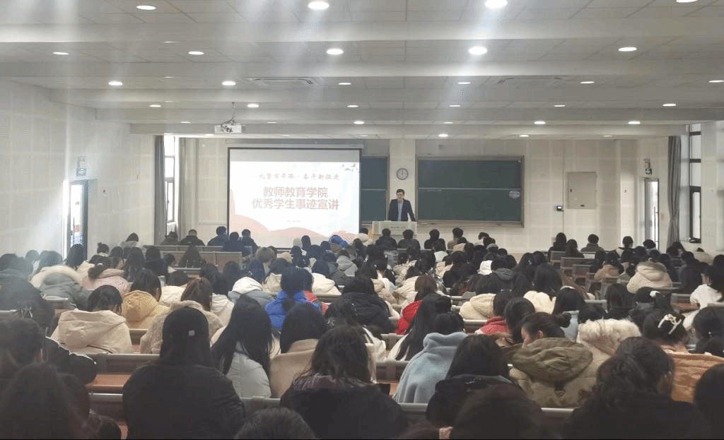 为进一步推进学风建设和校园文化建设,发挥学院优秀学生的榜样示范作用,引导同学们励志勤学、勇于实践、敢于创新、全面发展,12月23日下午,教师教育学院在滨湖校区博学楼A108开展了优秀学生先进事迹宣讲会,学院国家奖学金、励志奖学金获得者代表、优秀学生党员代表、“十佳优良学生班级、个人”代表到会分享,滨湖校区大一、大二学生参加,会议由辅导员屠家宝老师主持。