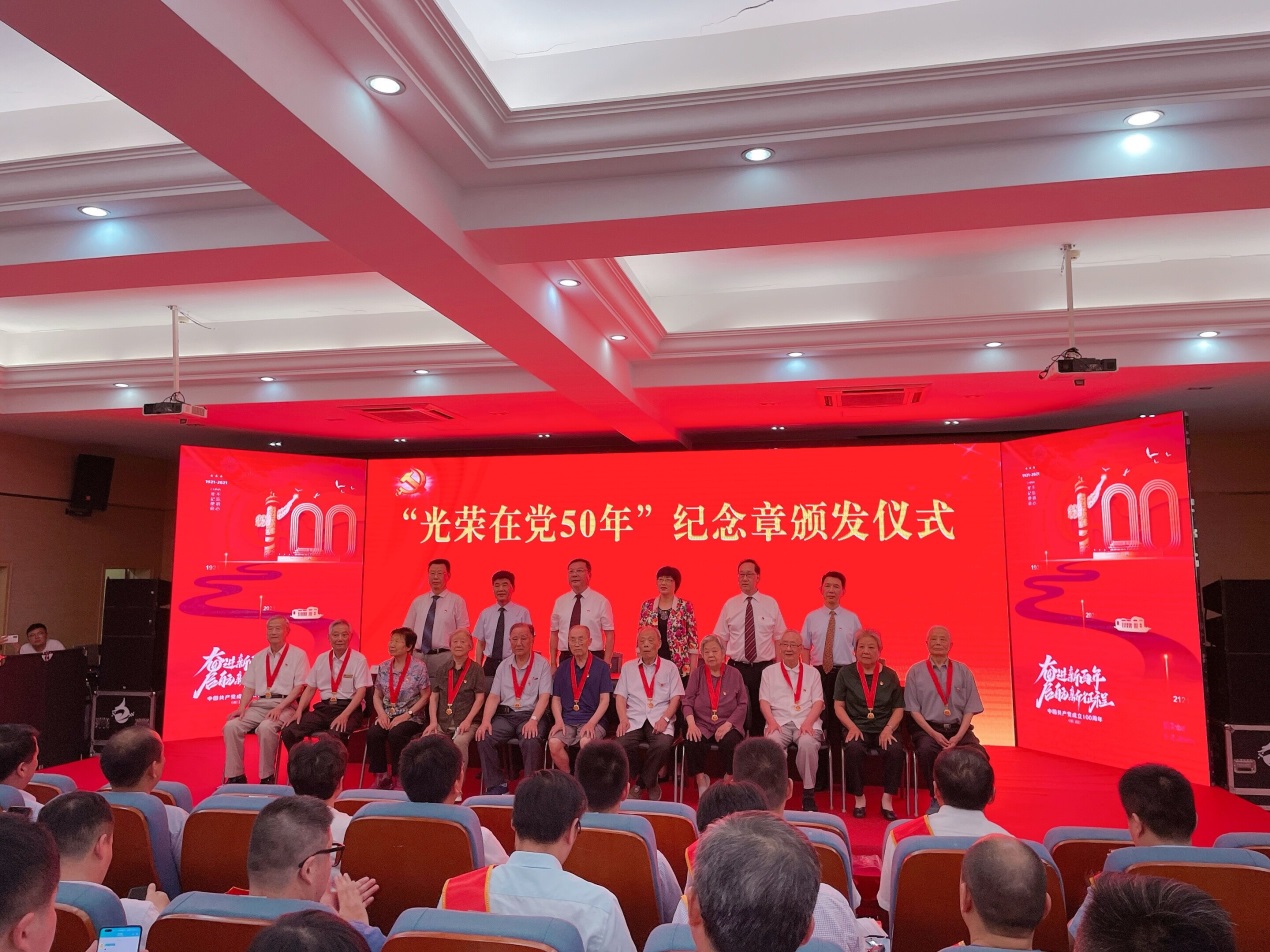 6月30日下午,学院党委书记穆娟,党委副书记、院长李群,党委委员、教工第三党支部书记吴桂翎一行来到刘美涓老师家中,为她送上节日的祝福和慰问金,对她长期以来为党的事业及学校学院发展所付出的心血、做出的贡献致以衷心的感谢和崇高的敬意,并邀请刘美涓老师出席学校庆祝建党100周年表彰大会。刘美涓老师于1956年加入中国共产党,今年已光荣在党65年。表彰大会上校党委书记徐成钢亲自为她颁发了“光荣在党50年”纪念徽章。丝丝白发耀奖章,光荣在党50年,是一份沉甸甸的荣光,也是一份宝贵的精神财富,佩戴上金灿灿的纪念章,老党员们激动不已。