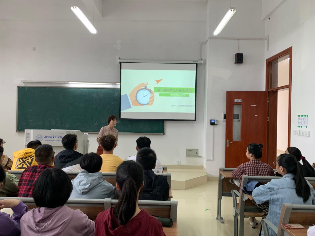 教师代表黄凤老师结合个人经历介绍了如何学好心理学,黄凤老师鼓励新生探索自身为什么学习心理专业,并结合她个人经历讲述学习心理学专业会有什么收获,最后,黄老师就如何学好心理学提出四点建议:一是保持对自己和他人的兴趣,二是花时间去阅读、去思考、去交友,三是尝试不同的人生可能,获取更多的人生体验,四是将认识、体验、感悟运用于实践中。