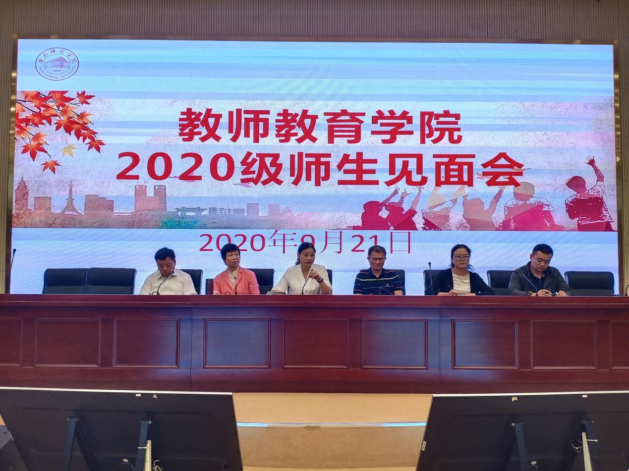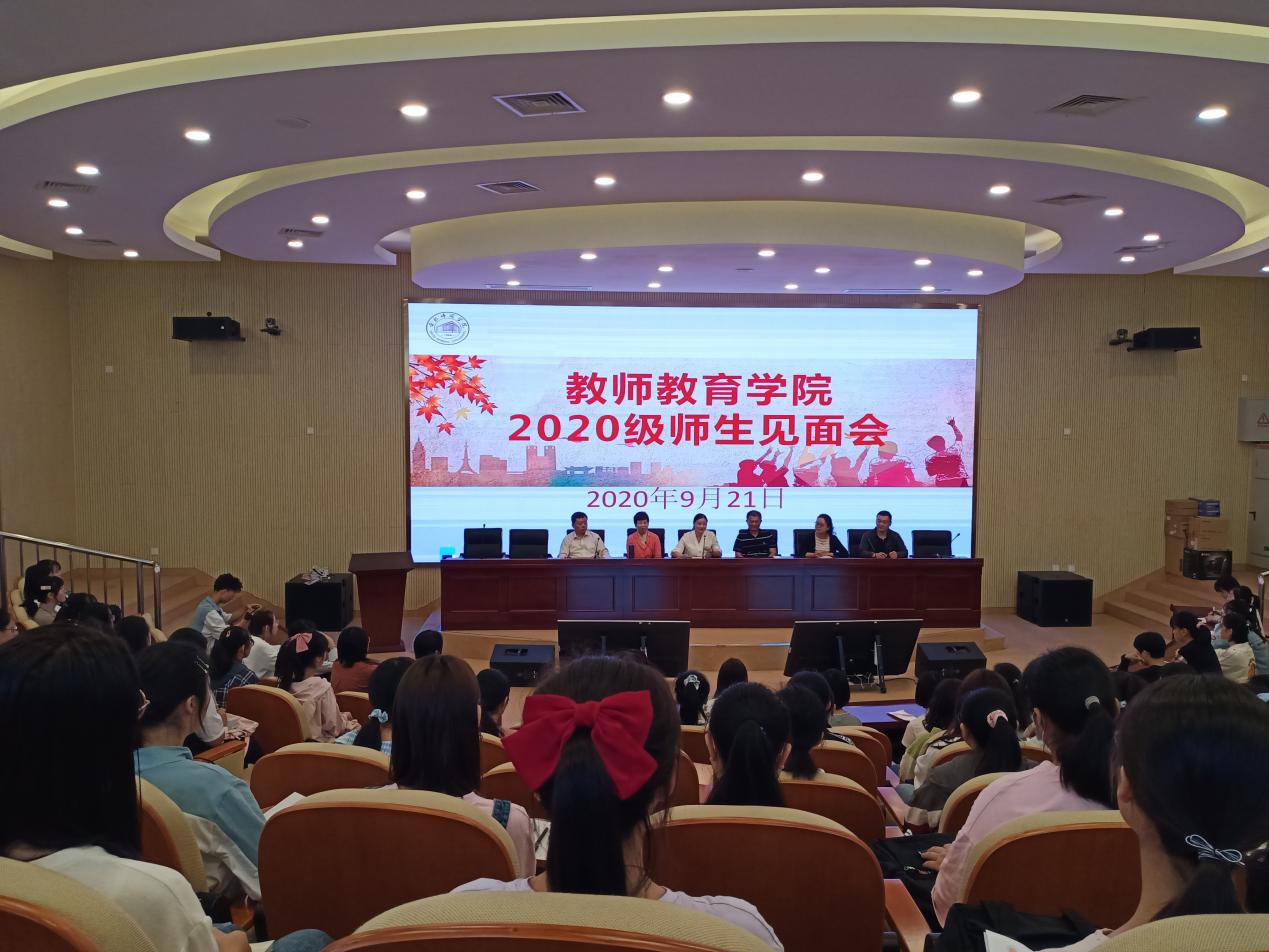 9月21号上午,教师教育学院2020级新生师生见面会在滨湖校区学术报告厅召开。教师教育学院党委书记穆娟、院长李群、副书记王东明、副院长闫龙、辅导员唐淼出席见面会,2020级全体普本新生参加会议,会议由分团委书记、学生党支部书记王磊主持。