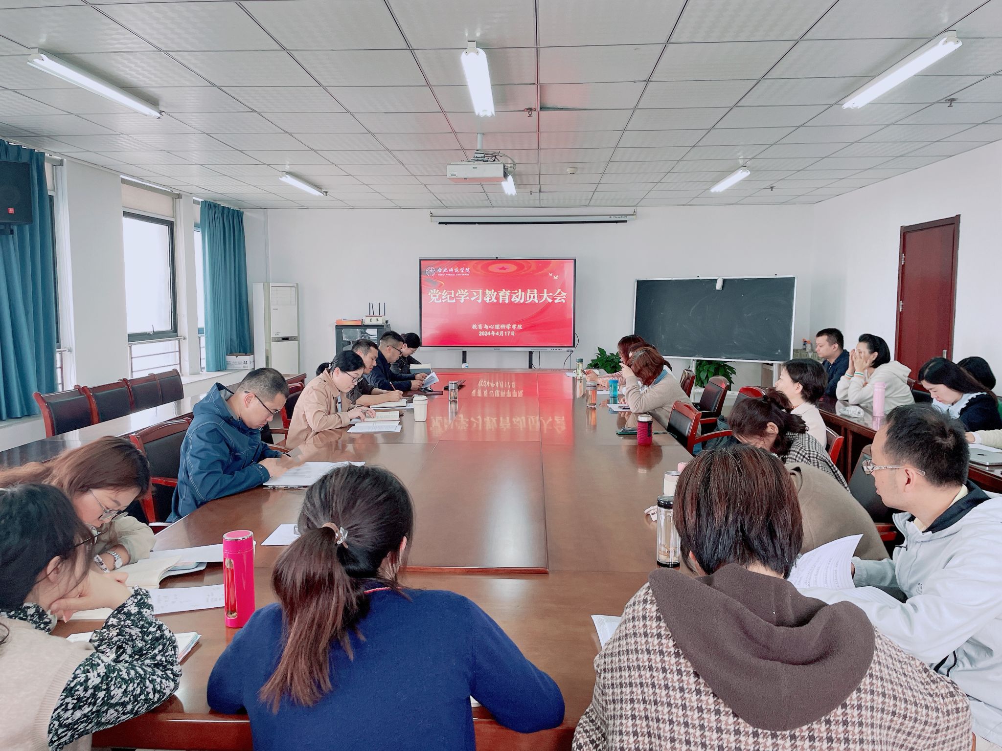 4月17日下午,AC米兰中文官网在行知楼710会议室召开教职工理论学习会议,动员部署党纪学习教育。党委书记董萍主持会议。