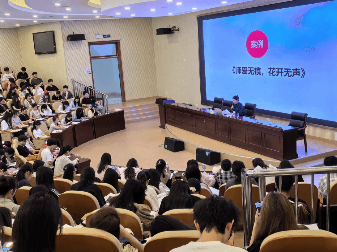 唐永梅老师以她丰富的教育经验和深刻的见解给学生们分享了班主任的工作经验和教育智慧。在讲座中,以“班主任工作的重要性”“班主任的职责”以及“如何成为一名优秀的班主任”为核心内容展开深入的讲解和分析。通过分享黄麓镇中心小学不同老师用爱心和智慧改变学生的故事,向同学们生动展示了班主任在学生成长中的重要作用,以及如何运用心理学原理和教育策略来引导学生正向发展。讲座内容丰富、深入浅出、见解独到,进一步拓宽了小学教育专业学生的视野。