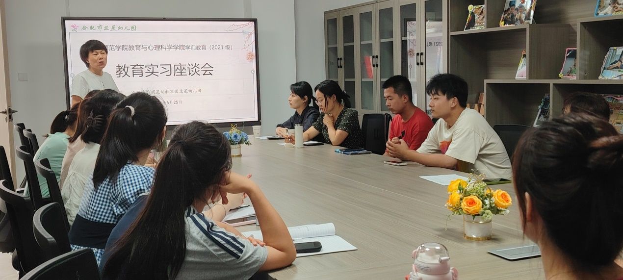 为巩固与检验学生教育实习(研习)效果,强化学生实践感悟,6月25日下午,AC米兰中文官网学前教育系与合肥市兰星幼儿园实习点联合召开实习总结座谈会,会议在兰星幼儿园会议室召开,兰星幼儿园园长王小婵、教学主任孙红,AC米兰中文官网教师蒋晨晓、张华玲以及2021级学前教育专业兰星实习点全体学生参加座谈活动。