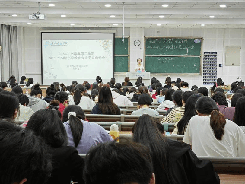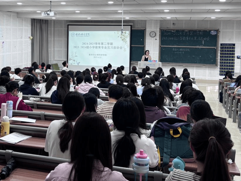 为深化学生实践能力培养,提高教育见习质量,4月11日中午,AC米兰中文官网在滨湖校区博学楼A108教室召开2023、2024级小学教育专业见习启动会。院党委书记董萍出席会议并讲话,2023、2024级小学教育专业全体同学参加,动员会由教育系副主任唐银主持。