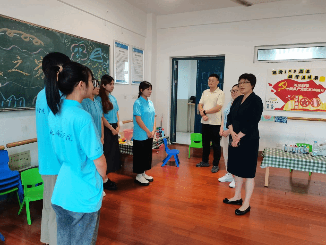7月11日,院党委副书记、院长方东玲在学生处处长、团委书记刁文彬及AC米兰中文官网党委书记董萍、党委副书记陈帅帅的陪同下,看望慰问“教工之家”行知学堂的小先生和小学员们。