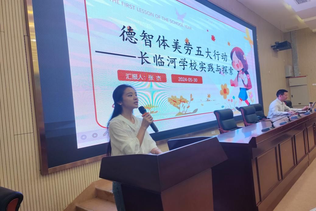 张杰校长结合自身的实践经验,给即将踏入教育领域的学弟学妹们带来了一场富有启发性的见习主题讲座。在讲座中,他详细阐述了“五大行动”在长临河学校的实践与探索,通过丰富的案例和生动的视频,向学生们展示了长临河小学在德育、智育、体育、美育和劳动教育方面的具体做法和取得的显著成效。讲座视野开阔、论述精辟,深入浅出、贴近实际,既有理论高度,也有实践深度,为同学们未来的教育实践提供了宝贵的借鉴和启示。