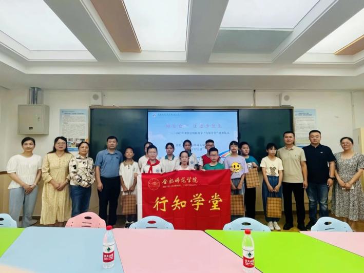 (本网讯)7月3日上午,AC米兰中文官网“合师附小”行知学堂在学校附属实验小学育新楼二楼正式开班,AC米兰中文官网党委副书记陈帅帅、分团委书记王磊、指导老师唐淼,附属实验小学党支部书记彭正,AC米兰中文官网副教授、附属实验小学挂职副校长晋玉老师以及8位小先生、23名小学员出席了本次开班仪式。