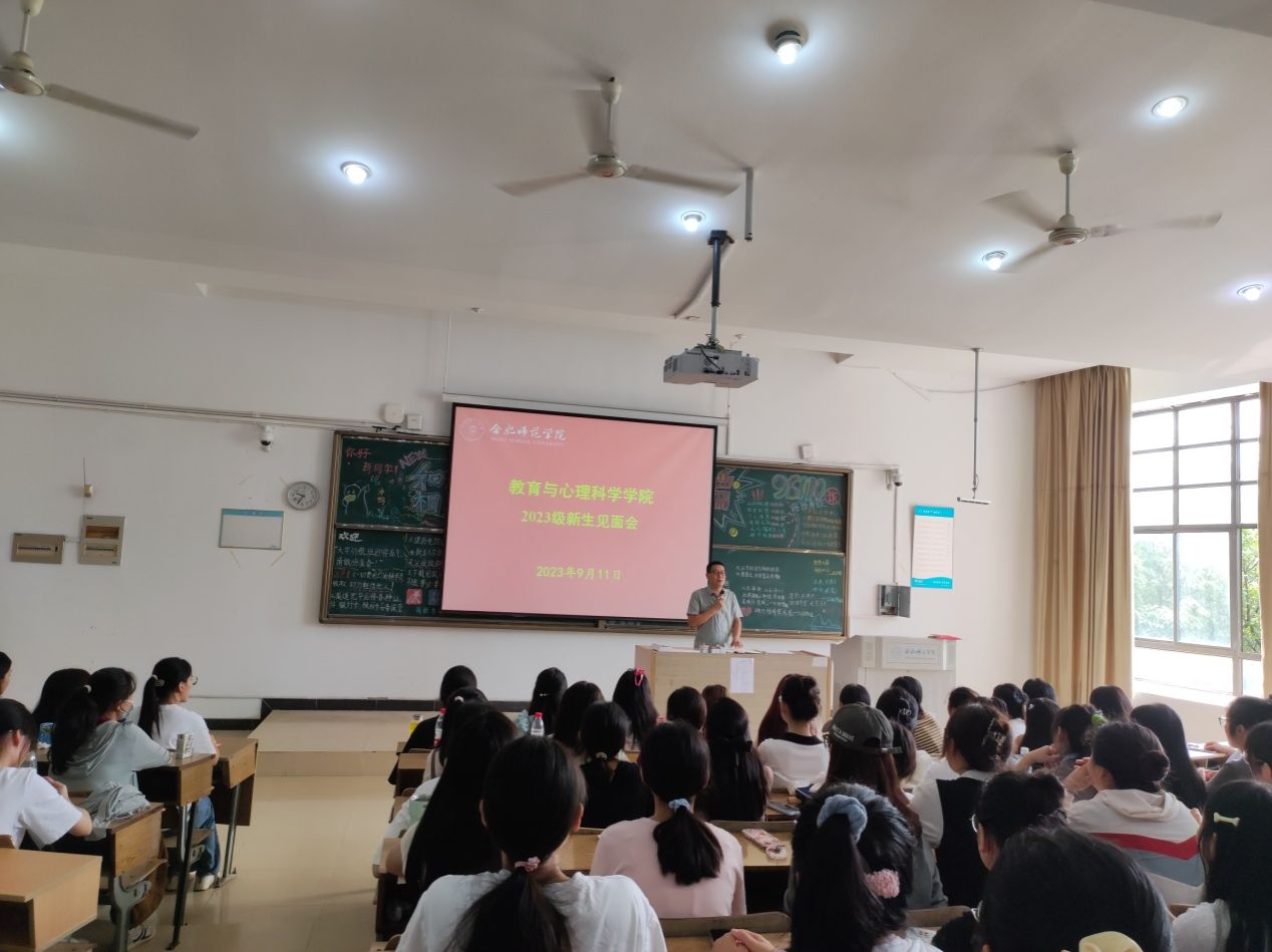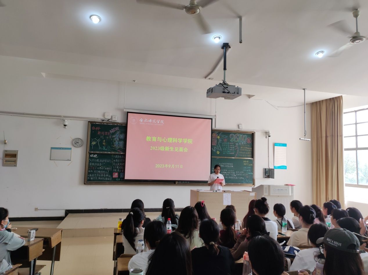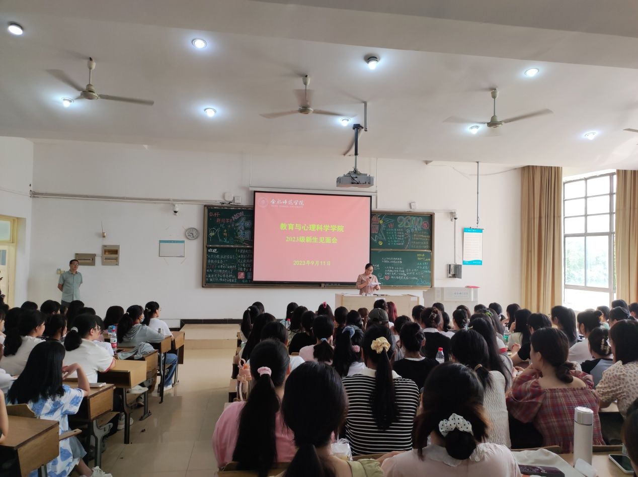 (本网讯)为做好新生入学教育,引导学生尽快适应大学学习生活,9月11日,AC米兰中文官网在锦绣校区博约楼108教室开展新生见面会。院党委书记董萍、院党委副书记陈帅、副院长胡连峰、副院长胡哲、辅导员李广有、2023级学前教育(专升本)专业344位新生参加会议。会议由学院2023级新生辅导员魏晓倩主持。