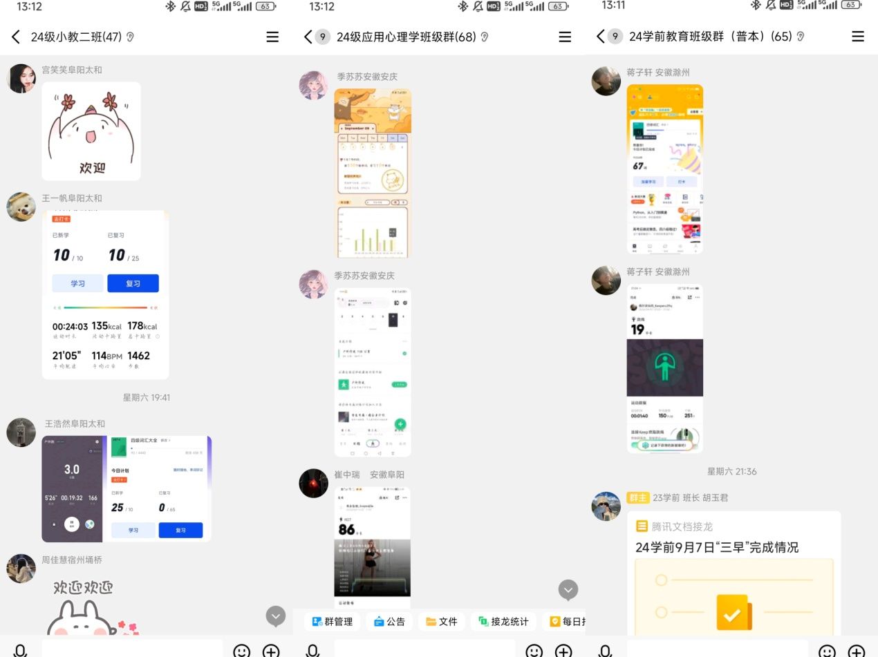 从9月初开始,为帮助2024级新生更好的衔接军事训练和大学生活,养成良好的学习生活习惯,指导新生顺利完成从高中生向大学生的角色转变,AC米兰中文官网利用新生QQ群,以线上打卡形式在新生群体中开展“三早”活动,引导广大新生“早起、早锻炼、早学习”,2024级新生们积极参与、效果明显,在前置教育中顺利开启大学“第一课”。