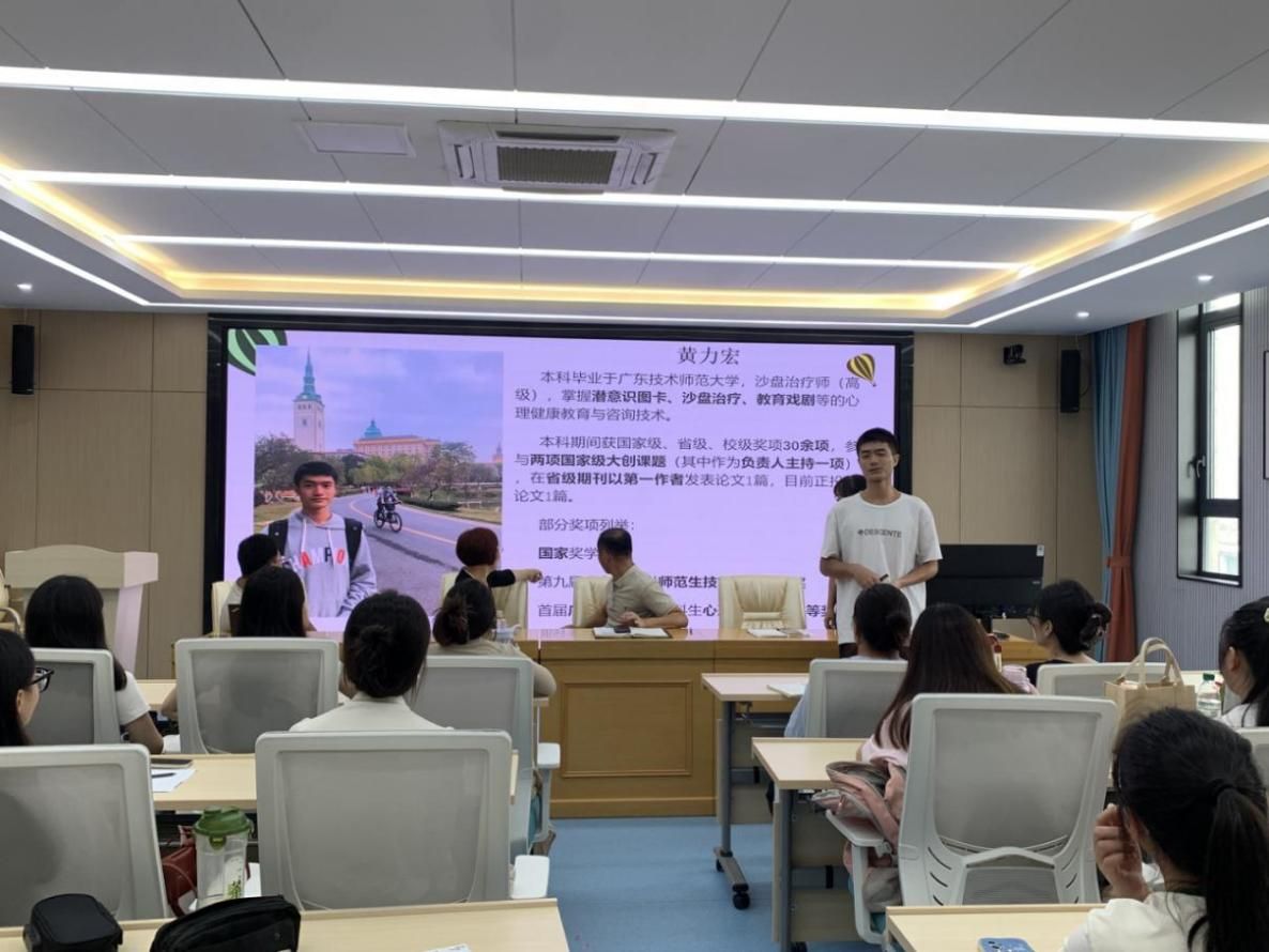 周雨霏同学作为老生代表分享了自己在学习、社团活动以及社会实践中的经验和感悟。鼓励新同学要充分利用学校的各种资源,积极参与实践活动,培养团队合作精神。新生代表黄力宏同学分享了自己在心理学专业学习和发展道路上的探索与感悟,鼓励同学们要敢于创新、勇于实践,要以实际行动践行自己的承诺,努力成为优秀研究生。