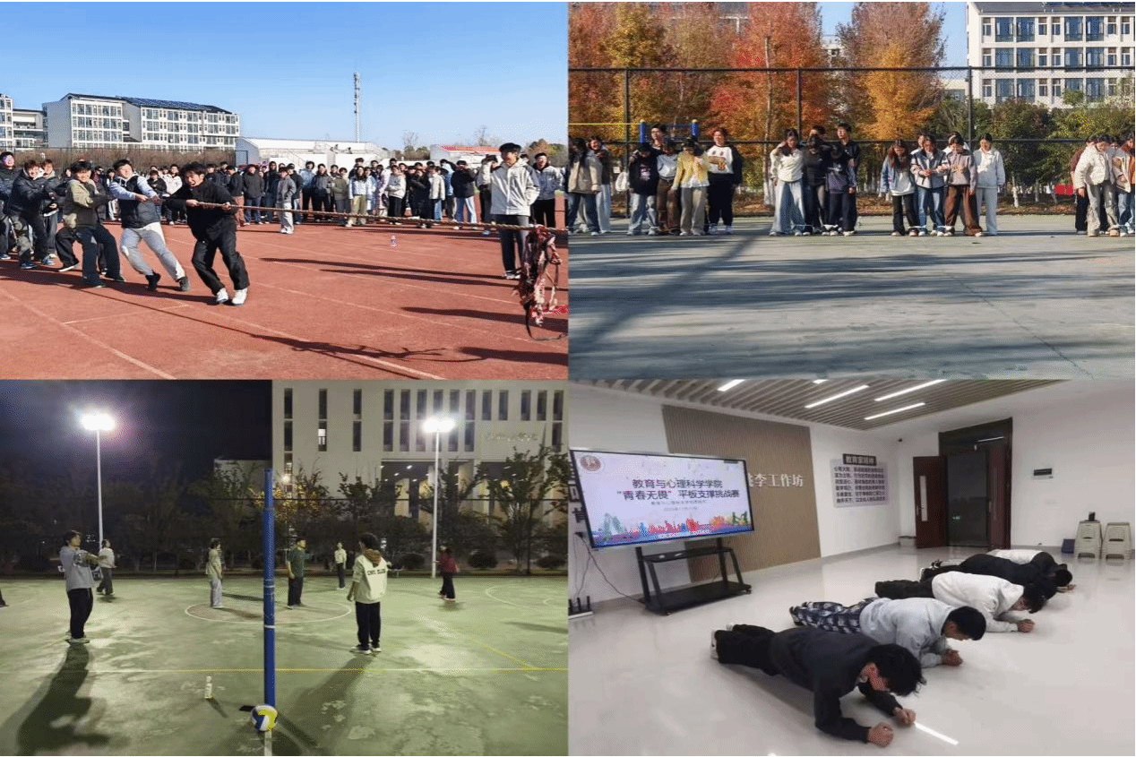 除了个人与单项竞技类活动,协作类项目同样亮点纷呈。学院趣味运动会、“冬季趣味三项”班级对抗赛聚焦团队协作,“两人三足”等活动在欢声笑语中展现青春活力,班级对抗赛则充分彰显集体凝聚力;“先锋杯”拔河比赛将嘉年华氛围推向高潮,参赛队员们紧握长绳、齐心协力向后拉,呐喊助威声此起彼伏;更有“导员带你来运动”活动温情上演,2024级辅导员吴勇带头组织晨跑、开展燃脂与抗阻训练,带领同学们在规律运动中强健体魄,在并肩锻炼中拉近师生距离。