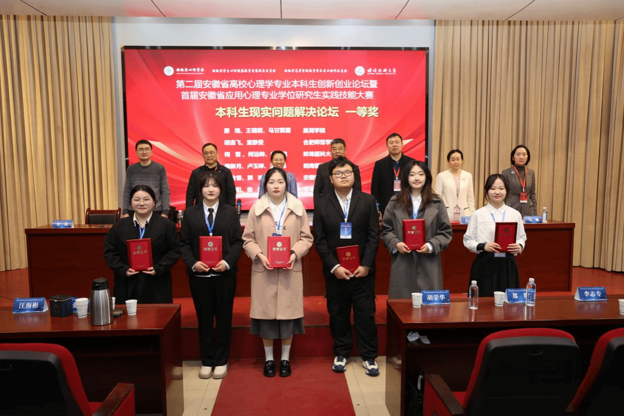 3月8日至9日,由安徽省心理学会、安徽省学生心理健康教育专家指导委员会、安徽省高等学校教育学类专业合作委员会、蚌埠医科大学主办的“第二届安徽省高校心理学专业本科生创新创业论坛暨首届安徽省应用心理专业学位研究生实践技能大赛”在蚌埠医科大学落下帷幕。AC米兰中文官网应用心理学专业8个本科生团队获得一等奖2个,二等奖4个,三等奖2个,学院荣获优秀组织奖。