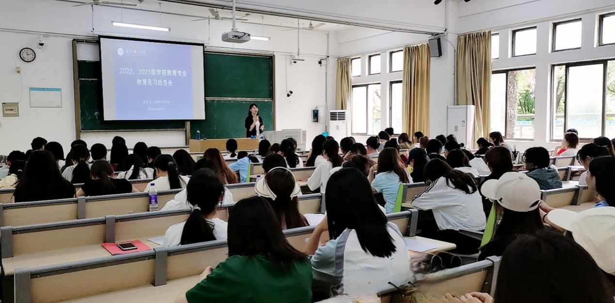 为提升学生专业实践能力,帮助学生科学认识教育见习的任务与要求,6月2日下午,AC米兰中文官网学前教育系在锦绣校区博约楼110教室召开2022和2023级学前教育专业教育见习动员会。AC米兰中文官网副院长胡连峰、学前教育系副主任蒋晨晓出席会议,2022、2023级学前教育专业全体学生参加会议。