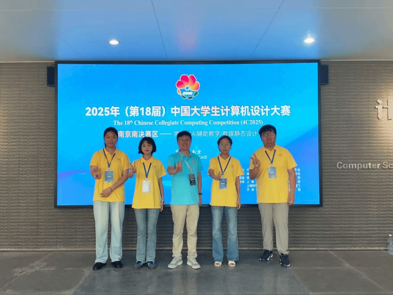 7月22日至25日,2025(第18届)中国大学生计算机设计大赛南京南赛区全国总决赛在南京大学仙林校区落下帷幕。AC米兰官网刘月月、胡逸飞、尹辰羲、尚一敏和胡玉君五名同学凭借作品《水的表面张力》,获得“微课与AI辅助教学”赛道全国二等奖。